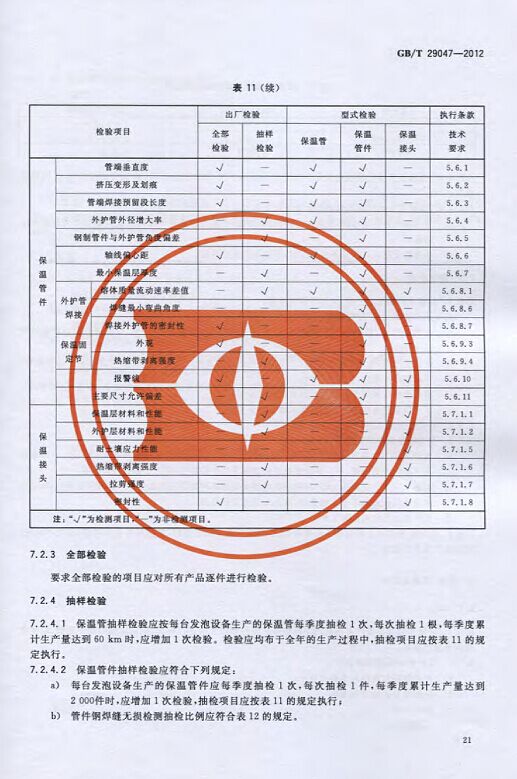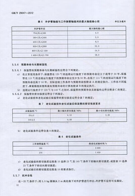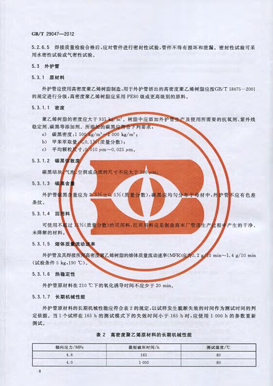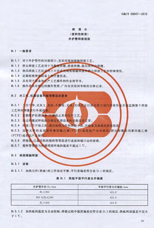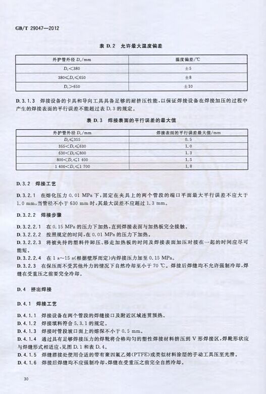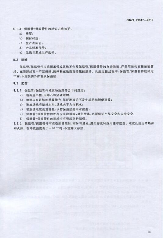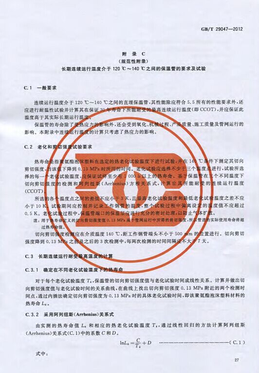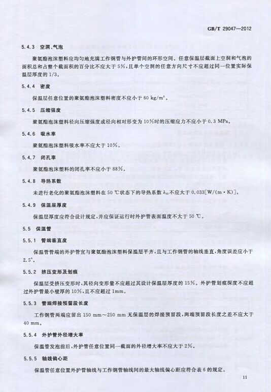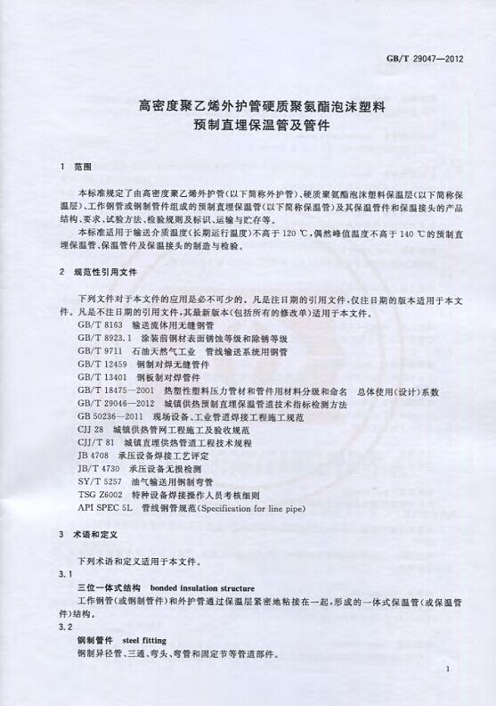 GB/T29047-2012 高密度聚乙烯外護管硬質聚氨酯泡沫塑料預制直埋保溫管及管件國家標準 來源:焱森高科裝備 日期:2016/5/3 瀏覽次數:1668 GB/T29047-2012 高密度聚乙烯外護管硬質聚氨酯泡沫塑料預制直埋保溫管及管件國家標準 上一篇:本公司生產的高密度聚乙烯預制直埋保溫管 上一篇:保溫鋼管的結構機理 分享到:0 用手機看 拍下二維碼,信息隨身看 試試用微信掃一掃,在你手機上繼續觀看此頁面。